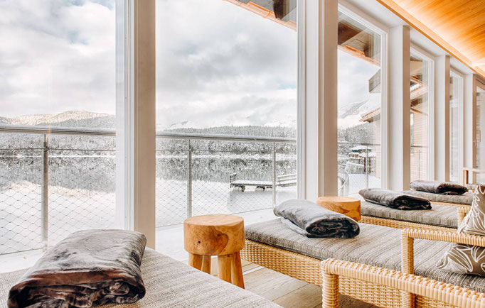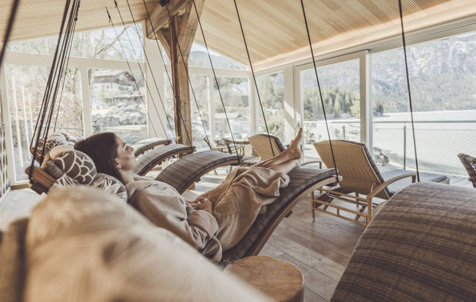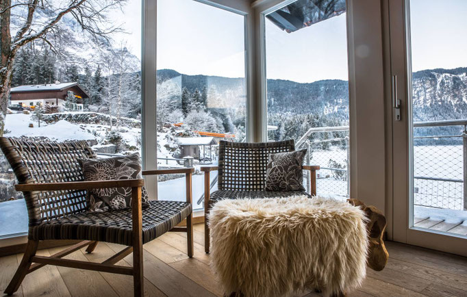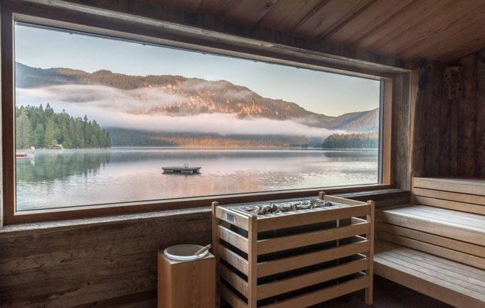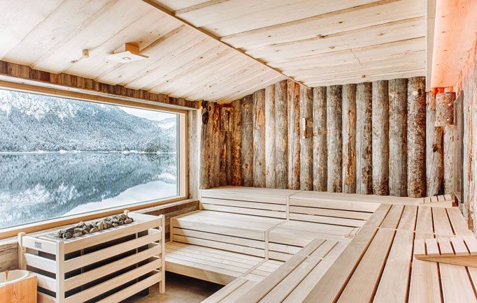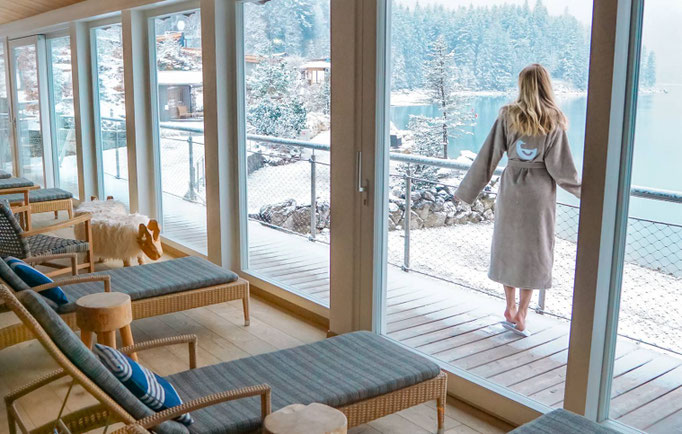 16.30 Uhr Sauna, Wellness und alles, was Dir guttut - mit Blick auf die Zugspitze