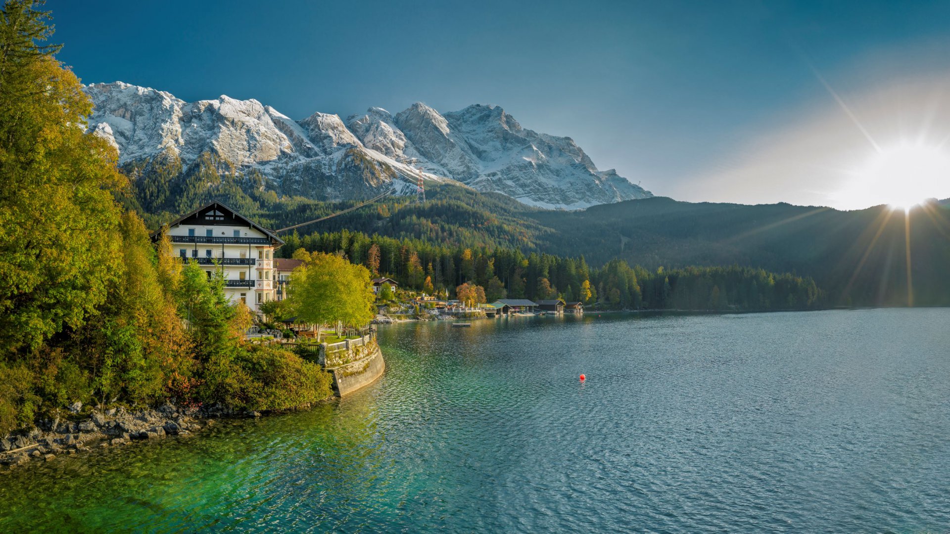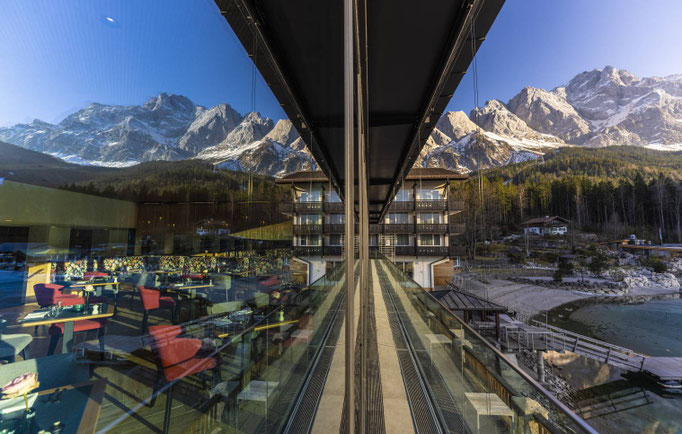 Im malerischen Eibsee-Hotel, direkt am Fuße der Zugspitze, öffnet sich dir eine Kulisse, die atemberaubender kaum sein könnte: